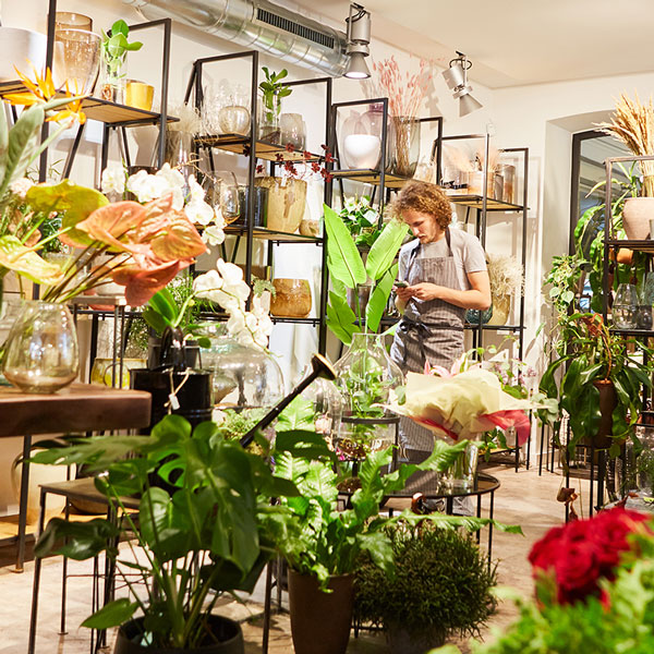 Floristry is the production, commerce, and trade in flowers. It encompasses flower care and handling, floral design, or flower arranging, merchandising, production, display and flower delivery. Wholesale florists sell bulk flowers and related supplies to professionals in the trade. Retail florists offer fresh flowers and related products and services to consumers. The first flower shop in the United States opened prior to 1851.